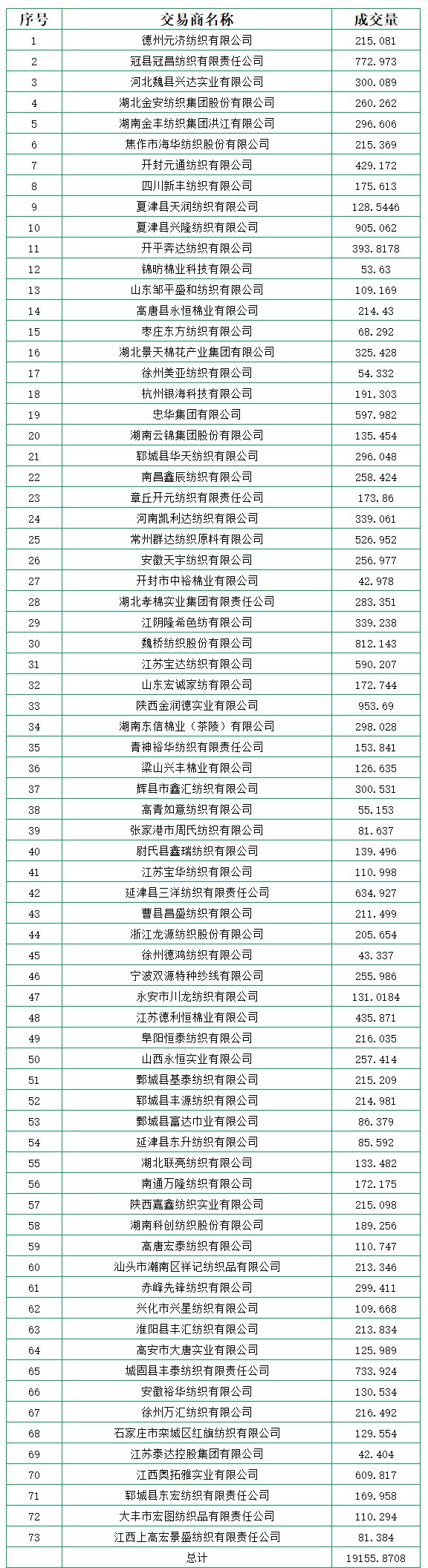 地產(chǎn)棉成交6837.85噸,成交率38.7%,成交均價(jià)14398元/噸,平均加價(jià)347元/噸,最高成交價(jià)16100元/噸,最低成交價(jià)13280元/噸。新疆棉成交12318.0208噸,成交率100%,成交均價(jià)15216元/噸,平均加價(jià)948元/噸,最高成交價(jià)16670元/噸,最低成交價(jià)14530元/噸。