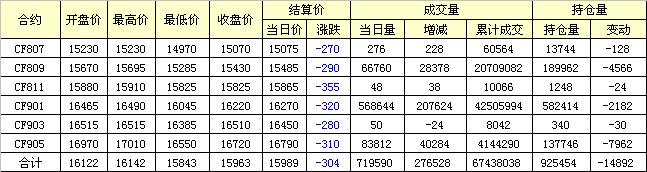 主力CF809合約當(dāng)日交易走勢(shì)圖