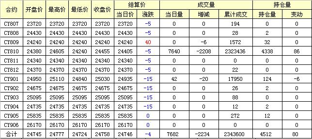 主力CY810合約當(dāng)日交易走勢(shì)