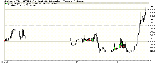 6日紐約期棉市場全面大幅收漲。1812合約結算價84.45美分,漲249點;1903合約結算價84.28美分,漲243點;1905合約結算價84.49美分,漲239點。其他合約上漲230-249點不等。當日12月合約小幅高開,開盤后交易重心受支撐小幅上行,后圍繞82.50美分一線震蕩運行,因缺乏有力支撐,市場回落至82.00美分附近并圍繞其維持窄幅震蕩態(tài)勢,后買盤發(fā)力,交易重心受支撐一路上行,至高點處出現(xiàn)小幅回落,以大幅上漲收盤。據(jù)美國農(nóng)業(yè)部(USDA),6.22-6.28日一周美國凈簽約出口本年度陸地棉4082噸,較前一周和近四周平均簽約量明顯下降;裝運93349噸,較前一周增加12%,較近四周平均裝運量減少4%;凈簽約本年度皮馬棉227噸,較前一周簽約量減少55%,較近四周平均簽約量減少82%。外圍美元指數(shù)下跌,大豆、玉米和小麥期貨上漲。美股全線上漲,科技股延續(xù)昨日強勢走勢。