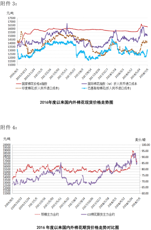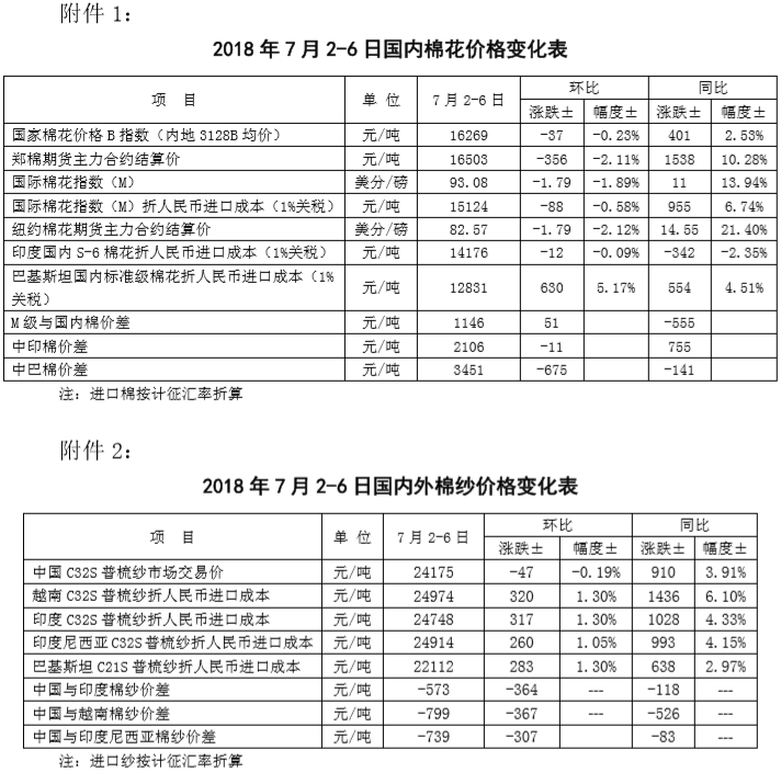 附件1:2018年7月2-6日國(guó)內(nèi)外棉花價(jià)格變化表