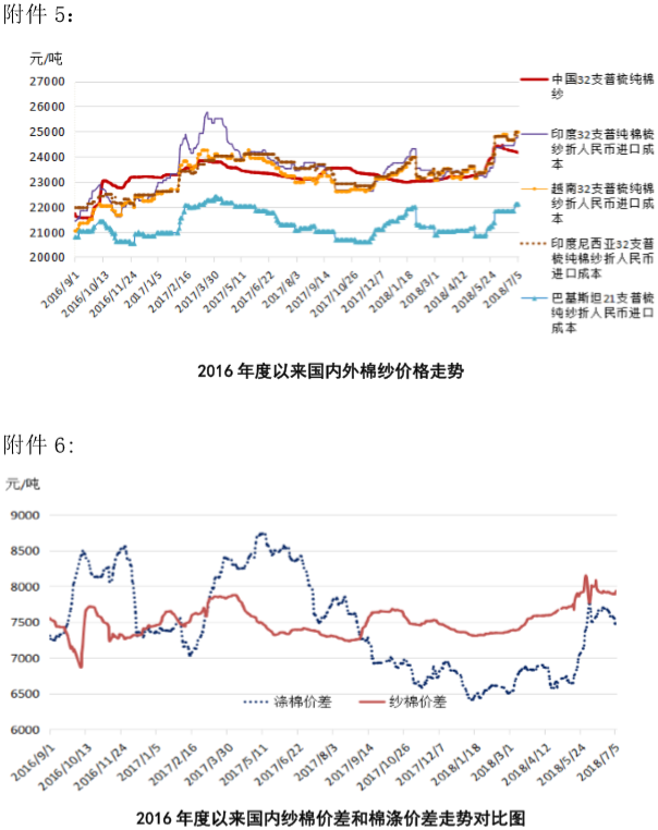 附件2:2018年7月2-6日國(guó)內(nèi)外棉紗價(jià)格變化表