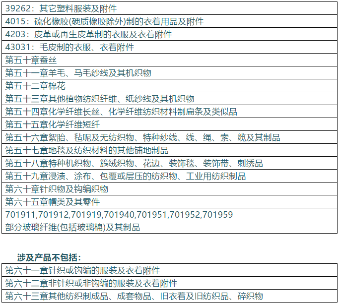 涉及產(chǎn)品包括(僅指紡織服裝統(tǒng)計項下產(chǎn)品)