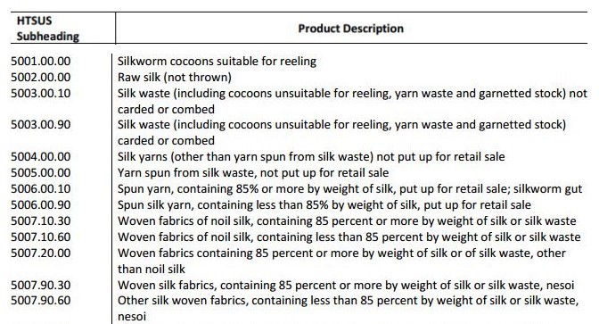 涉及加稅的《HS50章蠶絲》,2017年美國進口金額0.23億美元,進口同比-28.09%,占美國進口比重27.06%,占中國出口比重2.05%。