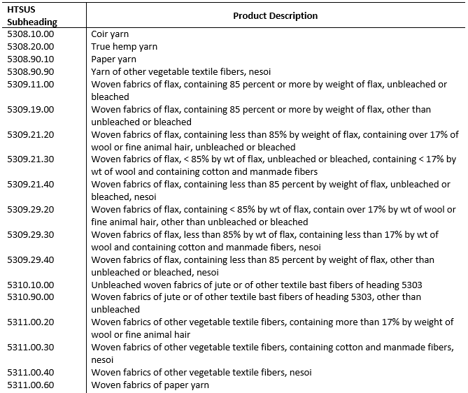 今天我們來分享一下《HS53章其他植物紡織纖維、紙紗線及其機織物》具體都有哪些產(chǎn)品,見下圖