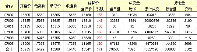 7月12日隔夜鄭棉回升后盤整,今盤中震蕩上行,尾盤在短線平倉盤打壓下調(diào)整,日線形成陽線。日內(nèi)成交量變化不大,持倉量減少。基本面情況:據(jù)中國棉花協(xié)會棉花物流分會對全國18個省市的186家棉花交割和監(jiān)管倉庫、社會倉庫、保稅區(qū)倉庫和加工企業(yè)倉庫的調(diào)查數(shù)據(jù)顯示:6月底全國棉花商業(yè)庫存總量約225.74萬噸,較上月減少29.61萬噸,環(huán)比下降11.6%,但同比仍高71.9%。