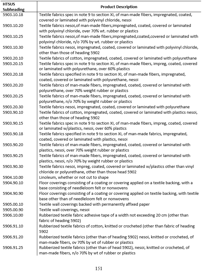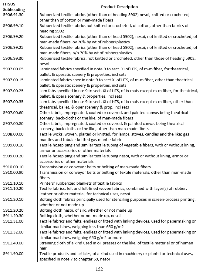 今天我們來(lái)分享一下《HS59章浸漬、涂布、包覆或?qū)訅旱募徔椢?、工業(yè)用紡織制品》具體都有哪些產(chǎn)品,見(jiàn)下圖
