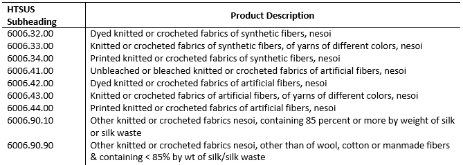 涉及加稅的《HS60章針織物及鉤編織物》,2017年美國進口金額4.71億美元,進口同比-10.67%,占美國進口比重44.91%,占中國出口比重2.85%。