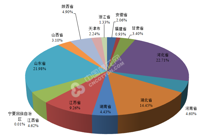 2017/2018年度儲(chǔ)備棉出庫銷售截至7月13日主要省份累計(jì)成交情況圖