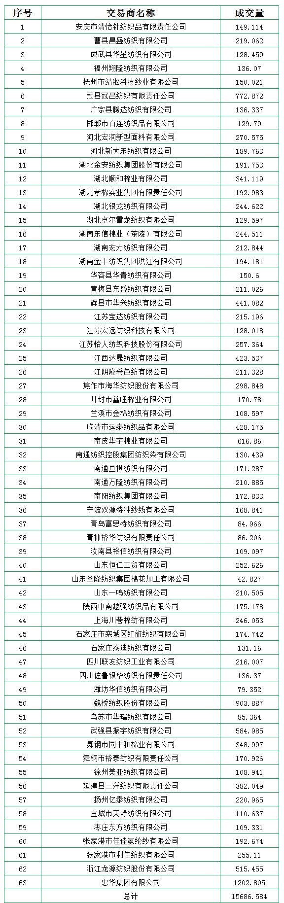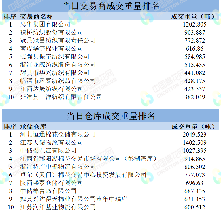 地產棉成交7677.615噸,成交率36%,成交均價14176元/噸,平均加價165元/噸,最高成交價15040元/噸,最低成交價13550元/噸;新疆棉成交8008.969噸,成交率94%,成交均價15224元/噸,平均加價724元/噸,最高成交價17060元/噸,最低成交價14520元/噸。