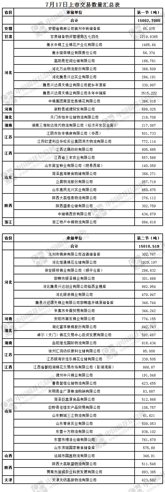 7月17日兩節(jié)共計輪出儲備棉30013.2195噸。第一節(jié)銷售儲備棉15002.7005噸,其中需要倒垛出庫68捆。第二節(jié)銷售儲備棉15010.519噸,其中需要倒垛出庫68捆。