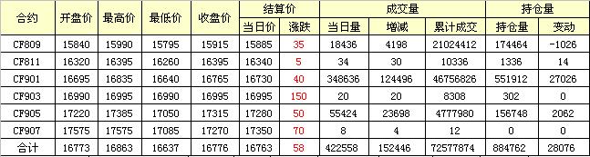 主力CF809合約當(dāng)日交易走勢圖