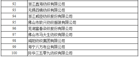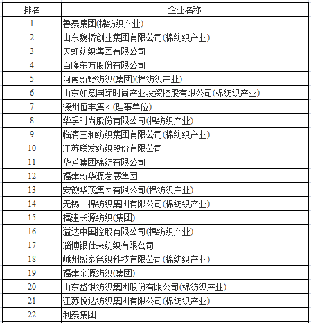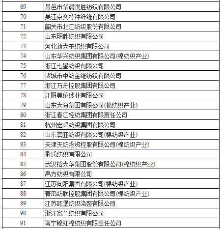 7月20日,中國(guó)棉紡織行業(yè)協(xié)會(huì)公布了“2017年中國(guó)棉紡織行業(yè)競(jìng)爭(zhēng)力百?gòu)?qiáng)企業(yè)名單”。