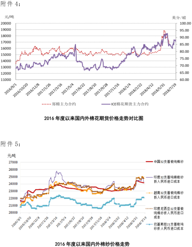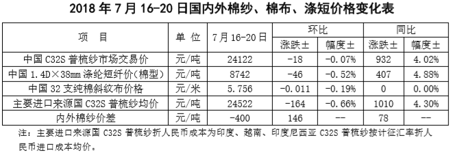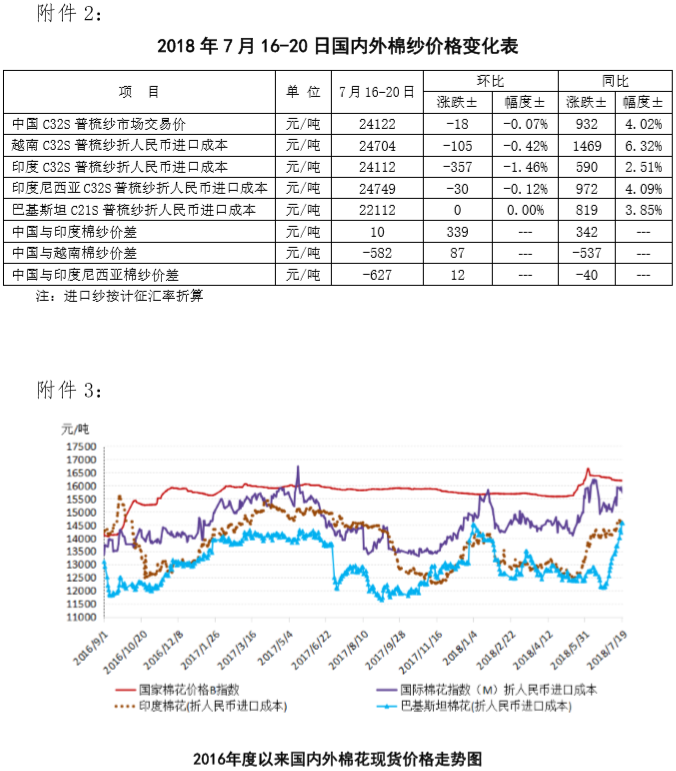 附件2:2018年7月16-20日國內(nèi)外棉紗價(jià)格變化表