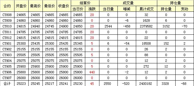 主力CY810合約當(dāng)日交易走勢