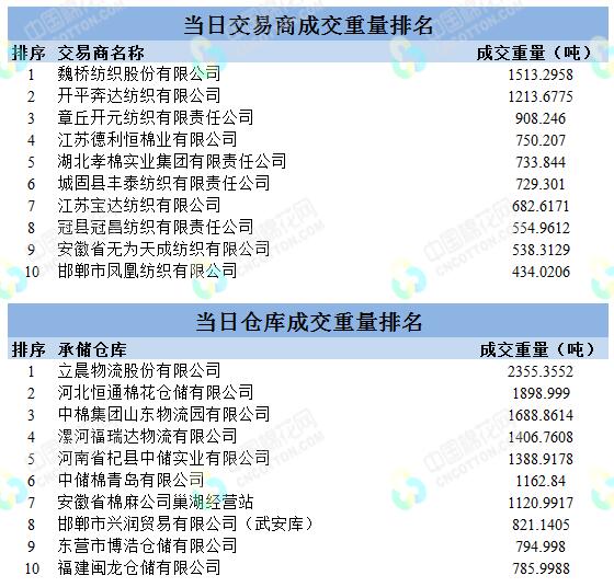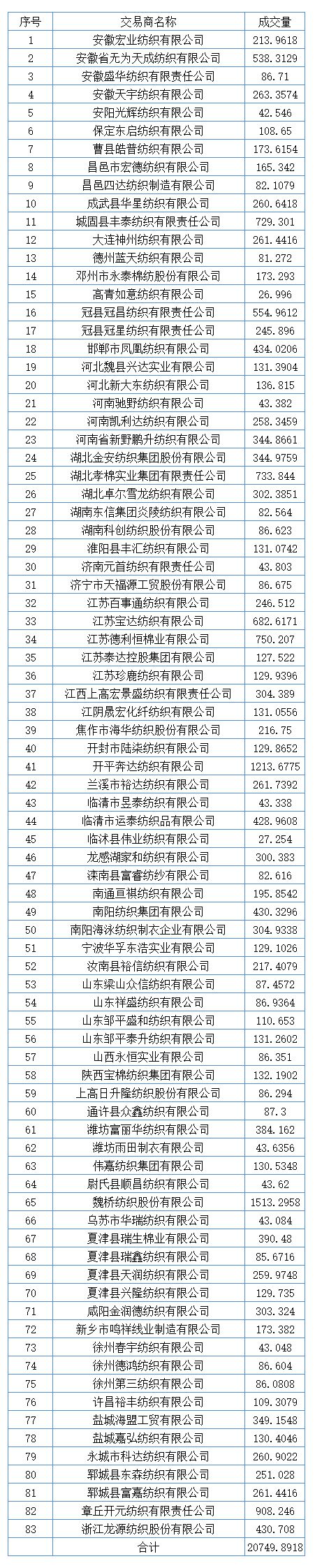 地產(chǎn)棉成交5077.9778噸,成交率35.93%,成交均價(jià)14450元/噸,平均加價(jià)60元/噸,最高成交價(jià)15400元/噸,最低成交價(jià)14110元/噸。新疆棉成交15671.914噸,成交率98.63%,成交均價(jià)15230元/噸,平均加價(jià)617元/噸,最高成交價(jià)16480元/噸,最低成交價(jià)14520元/噸。