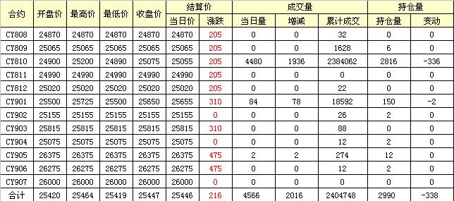 主力CY810合約當(dāng)日交易走勢(shì)