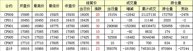 主力CF809合約當日交易走勢圖