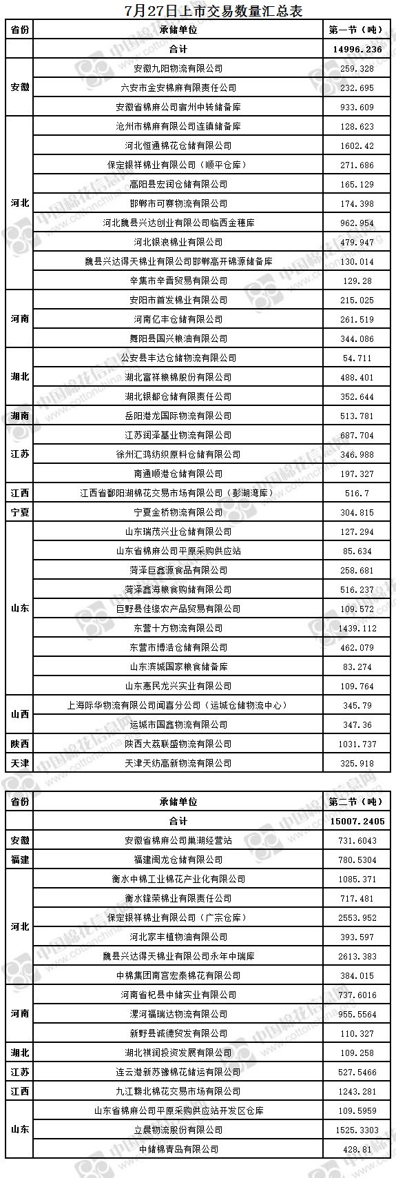 4、福建閩龍倉(cāng)儲(chǔ)有限公司、河南省杞縣中儲(chǔ)實(shí)業(yè)有限公司、漯河福瑞達(dá)物流有限公司(含有部分包檢)、山東省棉麻公司平原采購(gòu)供應(yīng)站開(kāi)發(fā)區(qū)倉(cāng)庫(kù)、立晨物流股份有限公司、河北魏縣興達(dá)實(shí)業(yè)有限公司、邯鄲市興潤(rùn)貿(mào)易有限公司(武安庫(kù))(含有部分包檢)、安徽省棉麻公司巢湖經(jīng)營(yíng)站、中儲(chǔ)棉九江有限公司、中棉集團(tuán)山東物流園有限公司為實(shí)施按批抽樣方式檢驗(yàn)的承儲(chǔ)庫(kù),由于掛牌較為集中,請(qǐng)買(mǎi)方妥善協(xié)商安排出庫(kù)。