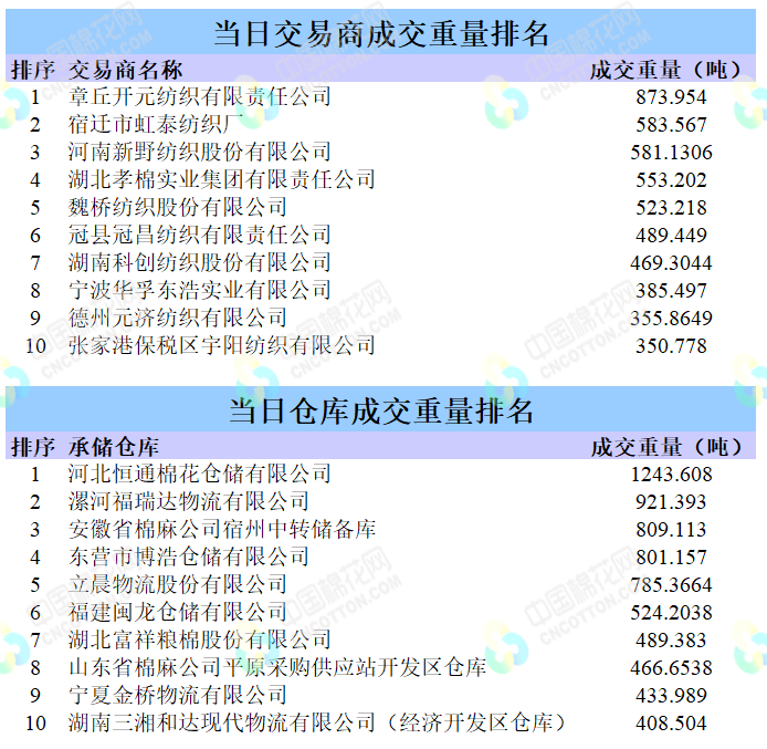地產(chǎn)棉成交5775.337噸,成交率24.31%,成交均價(jià)14513元/噸,平均加價(jià)238元/噸,最高成交價(jià)15290元/噸,最低成交價(jià)14190元/噸。新疆棉成交6242.2352噸,成交率100%,成交均價(jià)15091元/噸,平均加價(jià)657元/噸,最高成交價(jià)16030元/噸,最低成交價(jià)13970元/噸。