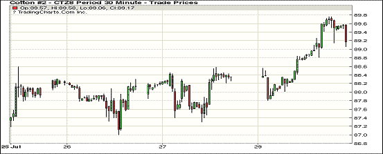 30日紐約期棉市場(chǎng)全面收漲。1812合約結(jié)算價(jià)89.20美分,漲86點(diǎn);1903合約結(jié)算價(jià)88.94美分,漲80點(diǎn);1905合約結(jié)算價(jià)88.82美分,漲68點(diǎn)。12月合約平穩(wěn)開盤,開盤后受支撐交易重心持續(xù)走高,整個(gè)上半場(chǎng)交易呈上行態(tài)勢(shì),后因獲利平倉市場(chǎng)短暫小幅回落,但迅速調(diào)頭向上,至當(dāng)日高點(diǎn)89.76美分處賣盤入場(chǎng),交易重心承壓走低,后在89.4-89.6美分區(qū)間窄幅震蕩運(yùn)行,至收盤時(shí)處因缺乏有力支撐,市場(chǎng)小幅回落,最終以漲勢(shì)收盤。外圍美元指數(shù)下跌,大豆和小麥期貨上漲。