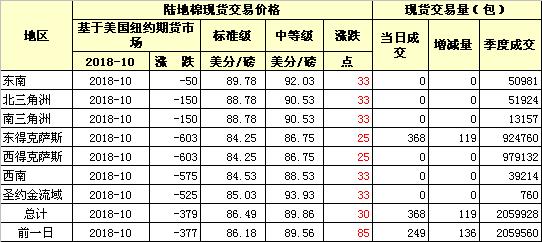 | 品級(jí) | 美分/磅 | 漲跌 | 滑準(zhǔn)稅率% | 折提貨價(jià)(元/噸) | 漲跌(元/噸) | ||