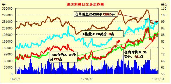 31日紐約期棉市場漲勢延續(xù)。1812合約結(jié)算價89.59美分,漲39點(diǎn);1903合約結(jié)算價89.50美分,漲56點(diǎn);1905合約結(jié)算價89.39美分,漲57點(diǎn)。其他合約上漲36-106點(diǎn)不等。當(dāng)日12月合約小幅低開,上半場交易維持窄幅震蕩趨勢,后賣盤入場,市場承壓下行,至當(dāng)日低點(diǎn)88.90美分處買盤發(fā)力,交易重心受支撐走高,最終以漲勢收盤。根據(jù)美國農(nóng)業(yè)部(USDA)最新數(shù)據(jù)來看,美棉生長狀況較前一周有所改善。分析指出,可能受美股及玉米大豆等農(nóng)產(chǎn)品期貨漲勢帶動,期棉維持上漲態(tài)勢。外圍美元指數(shù)上漲,玉米、大豆和小麥期貨上漲。美股收漲。