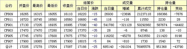 主力CF809合約當(dāng)日交易走勢圖