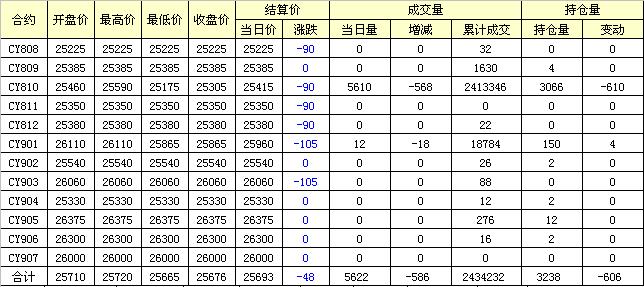 主力CY810合約當(dāng)日交易走勢