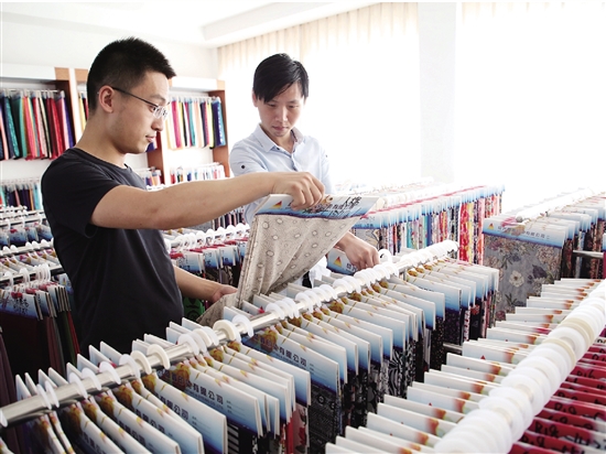 這兩天,在位于濱海的紹興盛鑫印染有限公司的面料陳列室內(nèi),幾個新款面料吸引不少客戶。盛鑫印染在面料設(shè)計研發(fā)上敢于創(chuàng)新,積極開拓新產(chǎn)品。據(jù)介紹,現(xiàn)在市面上已普及的雕印,曾經(jīng)在長達3年的時間里被盛鑫所掌控,掌握市場話語權(quán)?,F(xiàn)在盛鑫日產(chǎn)印花布50萬米,有中外設(shè)計師20多名,每月自主設(shè)計近600個花型供客戶免費挑選。(標(biāo)題:盛鑫印染日產(chǎn)印花布50萬米)