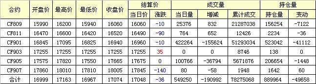 主力CF809合約當(dāng)日交易走勢圖