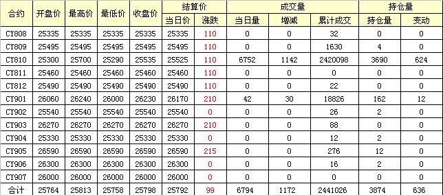 主力CY810合約當(dāng)日交易走勢