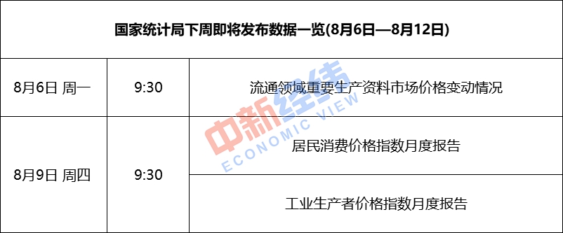 國家統(tǒng)計局下周即將發(fā)布數據一覽(8月6日—8月12日)。中新經緯閆淑鑫制圖