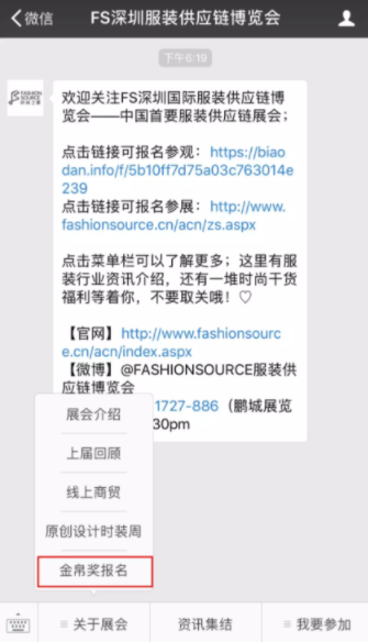 2)關(guān)注微信公眾號(hào):FS深圳服裝供應(yīng)鏈博覽會(huì)