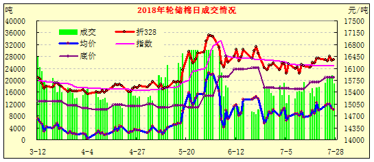 5、紡企競拍儲備棉謹(jǐn)慎,成交平穩(wěn)。3月12日-7月27日4個多月時間,共投放儲備棉291.07萬噸,成交174.7萬噸,成交比60%,低于上年約10個百分點(diǎn)。成交均價14720元/噸,折328均價16024元/噸,與現(xiàn)貨價格基本持平。因5月下旬棉價大幅波動,全國棉花交易市場從6月4日設(shè)紡織專場,禁止棉花經(jīng)營和其他企業(yè)入場。其中自6月4日設(shè)紡織專場以來,成交比例有所下降,成交價格平穩(wěn),平均成交率53.2%,較此前64.6%的成交率下降11.4個百分點(diǎn),即近半數(shù)流拍,反映紡企拍儲謹(jǐn)慎。隨著紡企用棉庫存逐步下降及對新棉預(yù)期的擔(dān)憂,預(yù)計(jì)8月需求增加,成交將有所回升。