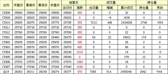 主力CY810合約當日交易走勢