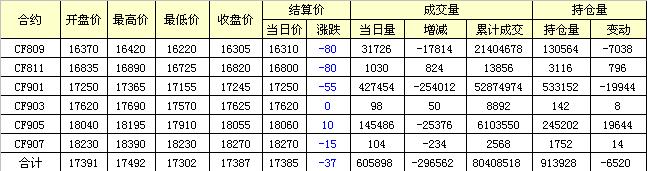 主力CF809合約當(dāng)日交易走勢圖