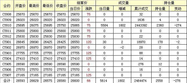 主力CY810合約當日交易走勢