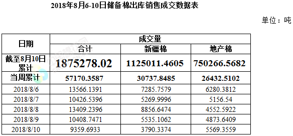 2017/2018年度儲(chǔ)備棉輪出截至8月10日成交量走勢(shì)