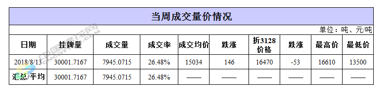 累計(jì)情況:截至8月13日,累計(jì)計(jì)劃出庫(kù)324.1萬噸,累計(jì)出庫(kù)成交188.32萬噸,成交率為58.11%;成交最高價(jià)17700元/噸,最低價(jià)12700元/噸。