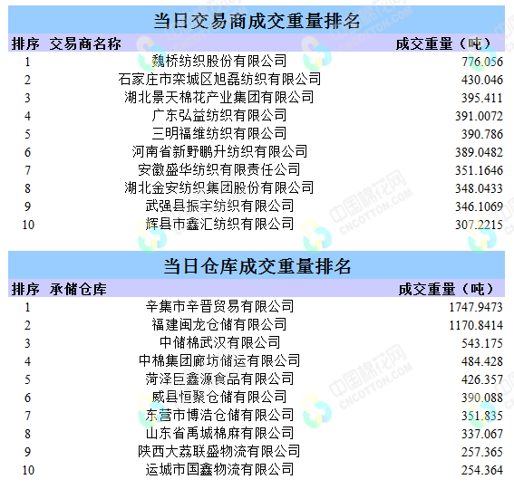 地產(chǎn)棉成交2274.522噸,成交率9.7%,成交均價(jià)14512元/噸,平均加價(jià)137元/噸,最高成交價(jià)16120元/噸,最低成交價(jià)13500元/噸。新疆棉成交5670.5495噸,成交率86.2%,成交均價(jià)15244元/噸,平均加價(jià)413元/噸,最高成交價(jià)16610元/噸,最低成交價(jià)14250元/噸。