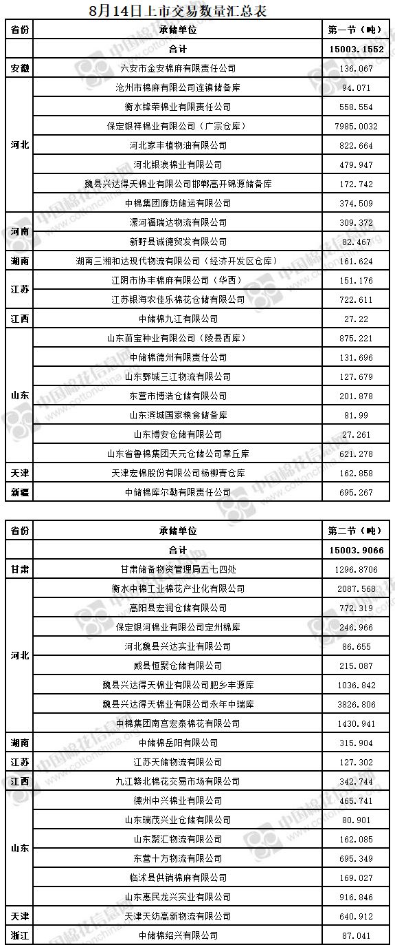 8月14日兩節(jié)共計輪出儲備棉30007.0618噸。第一節(jié)銷售儲備棉15003.1552噸,其中需要倒垛出庫69捆。第二節(jié)銷售儲備棉15003.9066噸,其中需要倒垛出庫66捆。