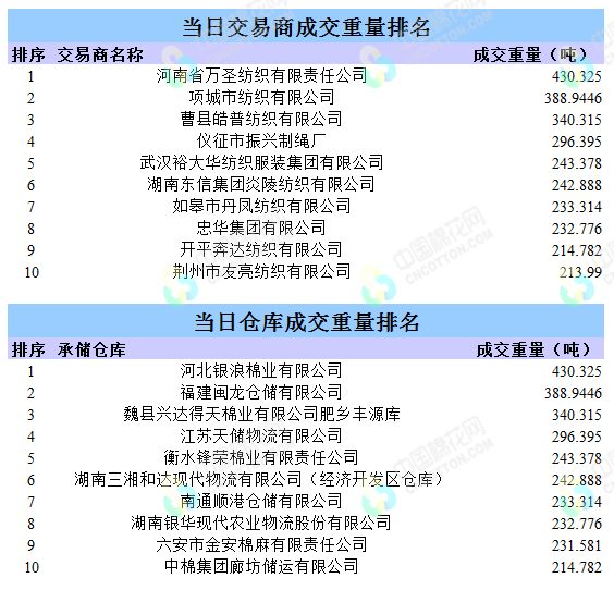 地產(chǎn)棉成交1917.795噸,成交率7.58%,成交均價14792元/噸,平均加價411元/噸,最高成交價15920元/噸,最低成交價13580元/噸。新疆棉成交2572.8966噸,成交率54.81%,成交均價15516元/噸,平均加價589元/噸,最高成交價16720元/噸,最低成交價15090元/噸。