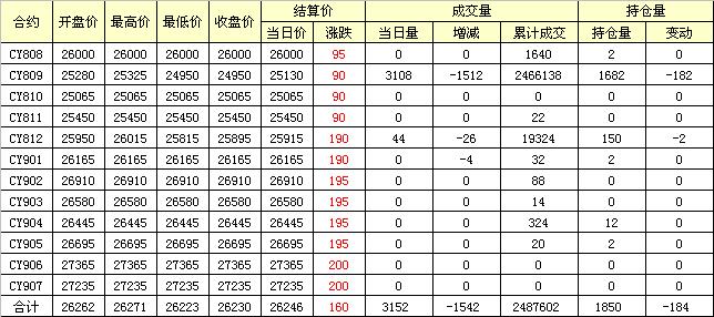 主力CY810合約當日交易走勢