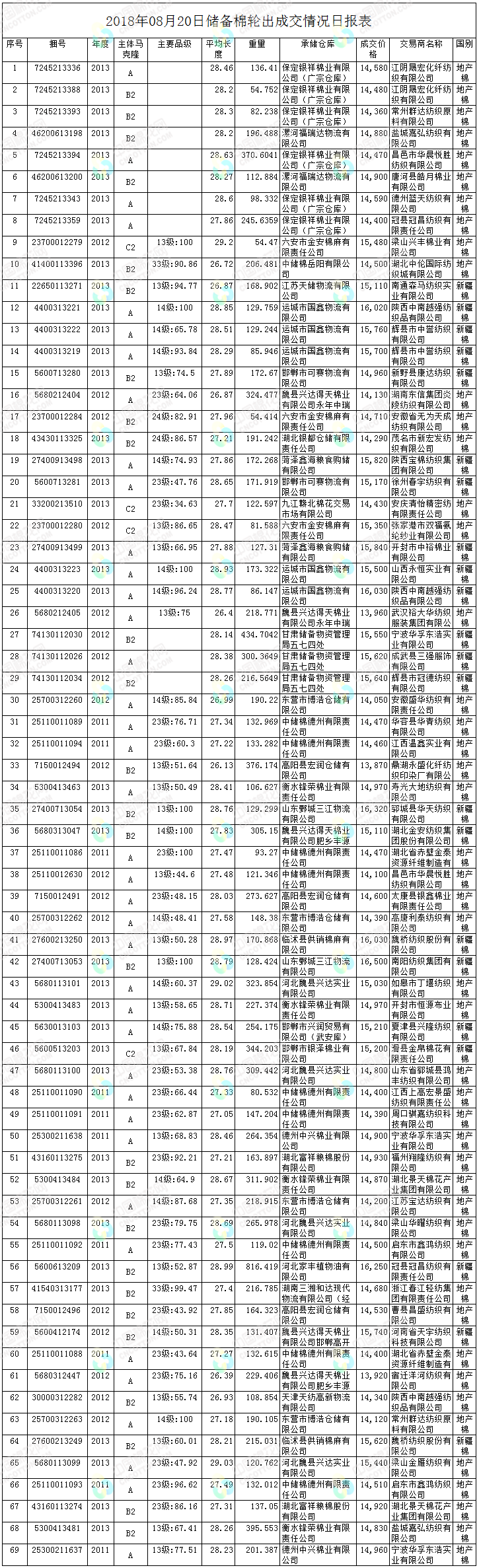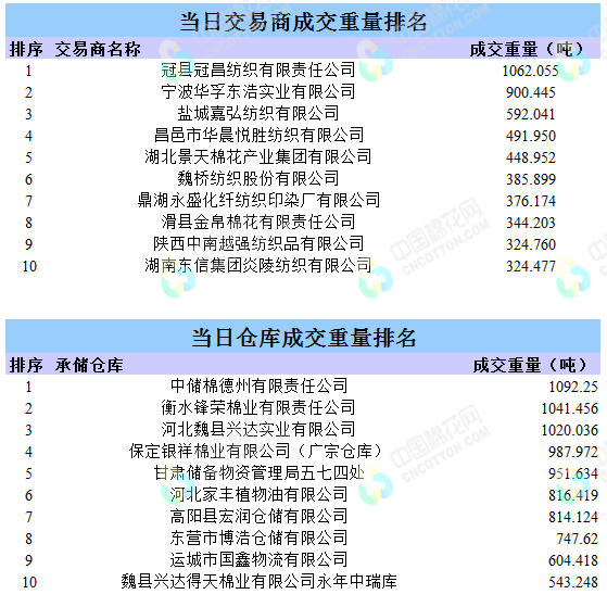地產棉成交8588.603噸,成交率37%,成交均價14556元/噸,平均加價254元/噸,最高成交價15480元/噸,最低成交價13870元/噸。新疆棉成交4864.097噸,成交率72%,成交均價15671元/噸,平均加價905元/噸,最高成交價16500元/噸,最低成交價14960元/噸。