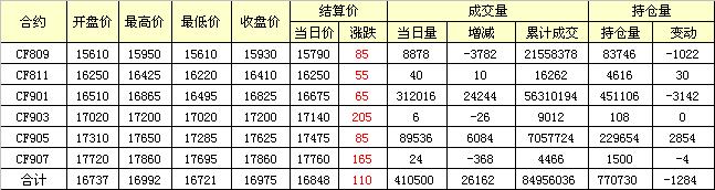 主力CF809合約當(dāng)日交易走勢圖