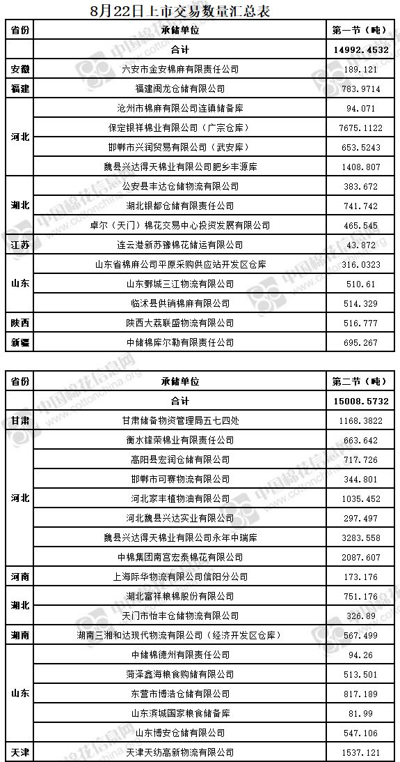 4、福建閩龍倉儲有限公司、漯河福瑞達物流有限公司、保定銀祥棉業(yè)有限公司(廣宗倉庫)為實施按批抽樣方式檢驗的承儲庫,由于掛牌較為集中,請買方妥善協(xié)商安排出庫。
