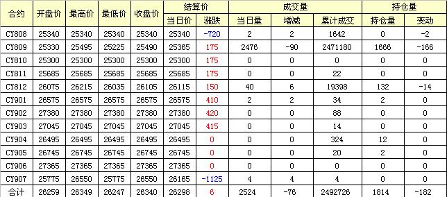 主力CY810合約當(dāng)日交易走勢(shì)
