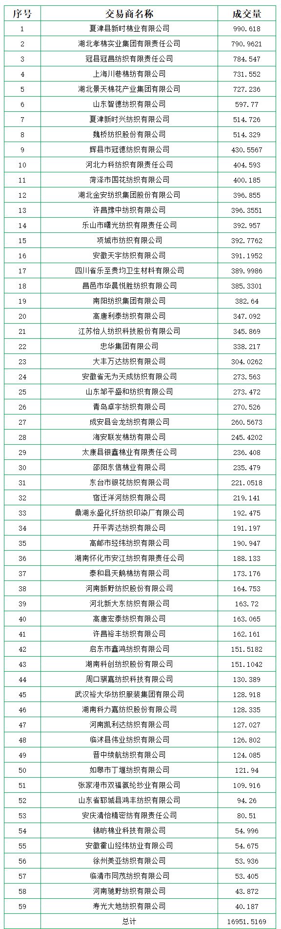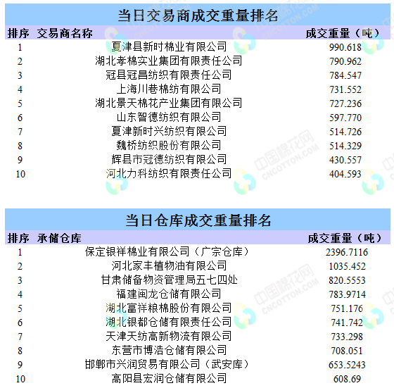 地產(chǎn)棉成交9624.4159噸,成交率44.49%,成交均價(jià)14367元/噸,平均加價(jià)380元/噸,最高成交價(jià)15500元/噸,最低成交價(jià)13800元/噸。新疆棉成交7327.101噸,成交率87.54%,成交均價(jià)15469元/噸,平均加價(jià)909元/噸,最高成交價(jià)16550元/噸,最低成交價(jià)14480元/噸。