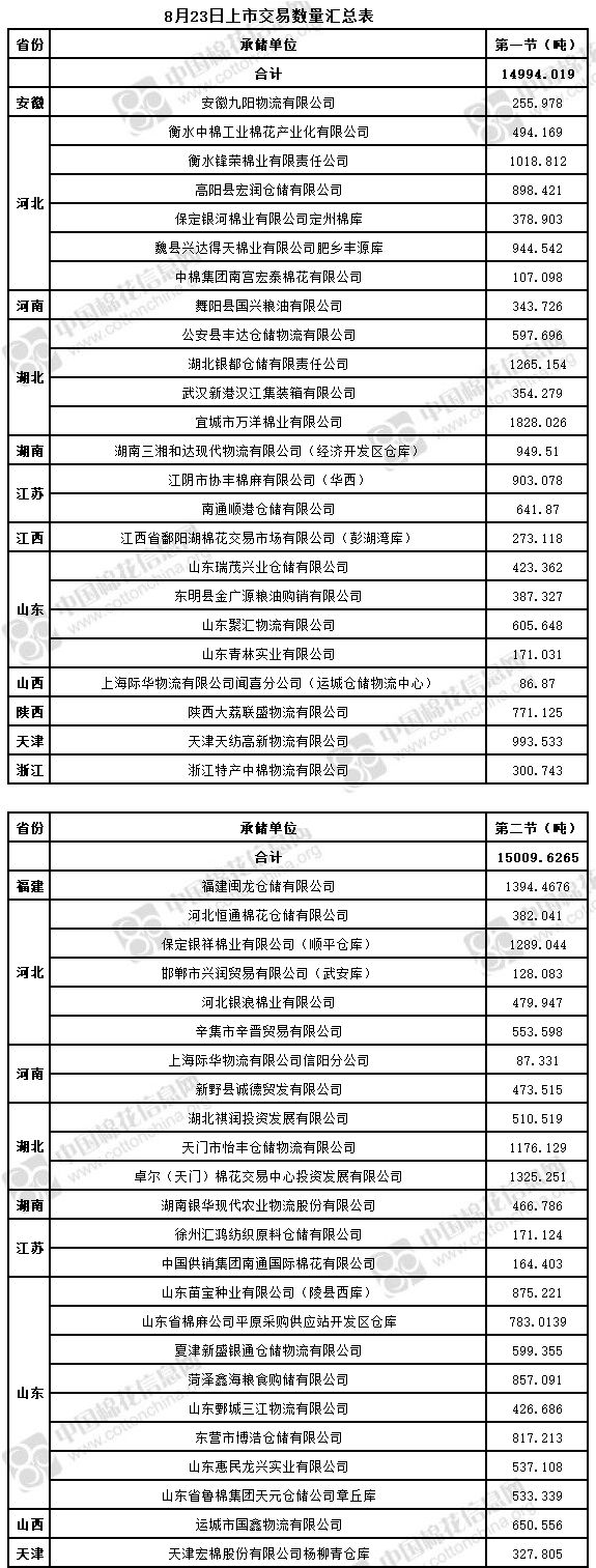 4、福建閩龍倉儲(chǔ)有限公司、山東省棉麻公司平原采購供應(yīng)站開發(fā)區(qū)倉庫為實(shí)施按批抽樣方式檢驗(yàn)的承儲(chǔ)庫,由于掛牌較為集中,請(qǐng)買方妥善協(xié)商安排出庫。